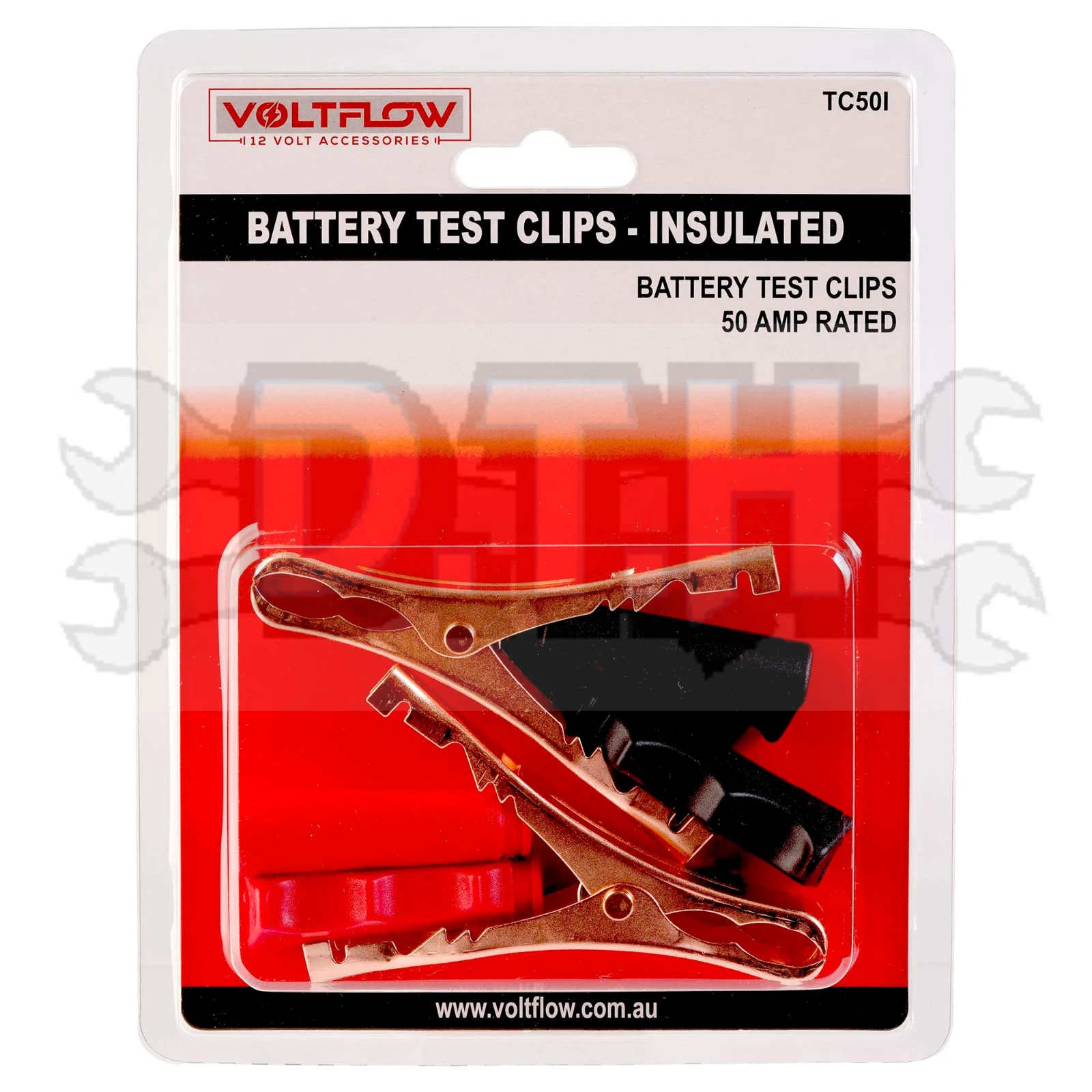 The VOLTFLOW 50 AMP Battery Charger Test Clips TC50I are designed for maximum efficiency and safety. These clips are insulated and perfect for professional automotive use, offering a reliable solution for charging needs.